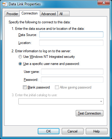 following procedure to build and validate an OLE-DB connection string.