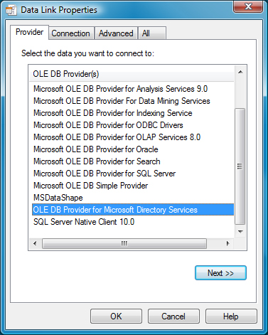 - Microsoft OLE DB Provider for SQL Server