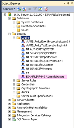 fnms-admin) for post-installation on-going administration (remembering that db_owner membership is required temporarily during installation, as described in Accounts) - Any operational account needing to log in to a central inventory beacon installed on your batch server