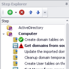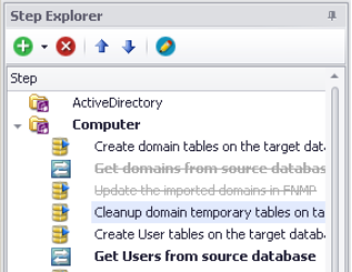 - Data transfer steps have a blue icon with white arrows, and copy data from one database to another using a bulk transfer.