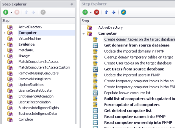 The step explorer shows the procedures in the Compliance Importer, and the steps within those procedures that will be executed for the current adapter.