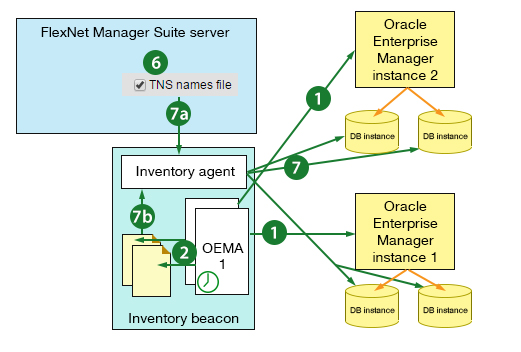 contacts its instance of Oracle Enterprise Manager, and collects the connection
