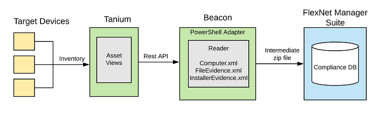 - The inventory beacon connects to Tanium to perform the inventory upload