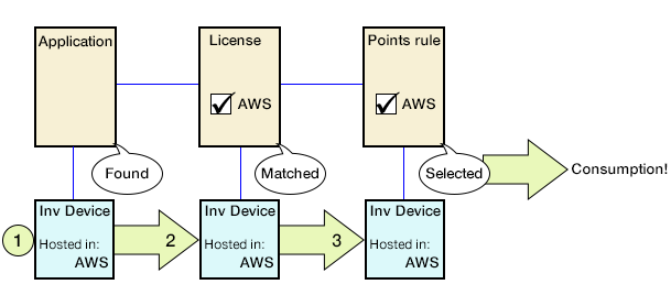 - A points rule (linked to that license) is selected that fits the same cloud service provider as identified for the inventory device