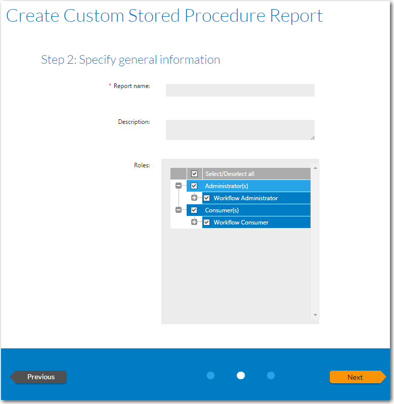 | 7. | In the Roles section, select those roles that you want to assign permission to view this report. |