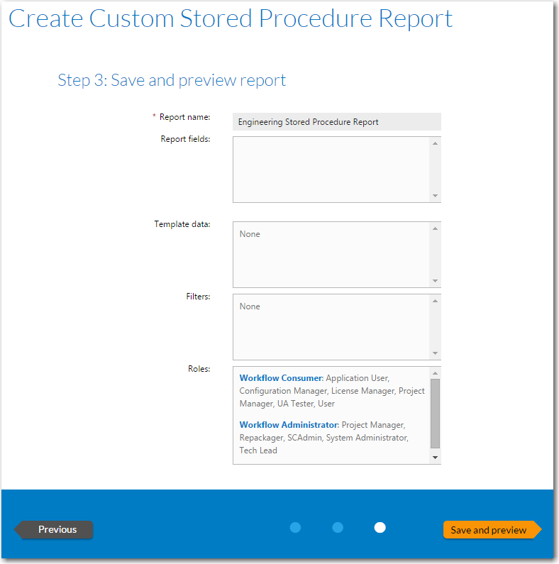 | 8. | Click Next. The Step 3: Save and preview report panel opens. |