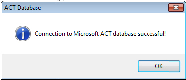 When you click Test on the Microsoft ACT tab, a successful message opens: