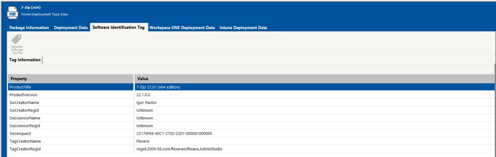 Open the Software Identification Tag tab. |