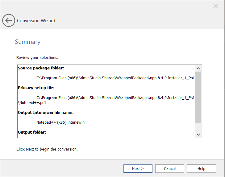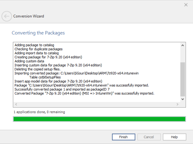 You can convert MSI/EXE/PS1 packages to Microsoft Intunewin using the Conversion Wizard.