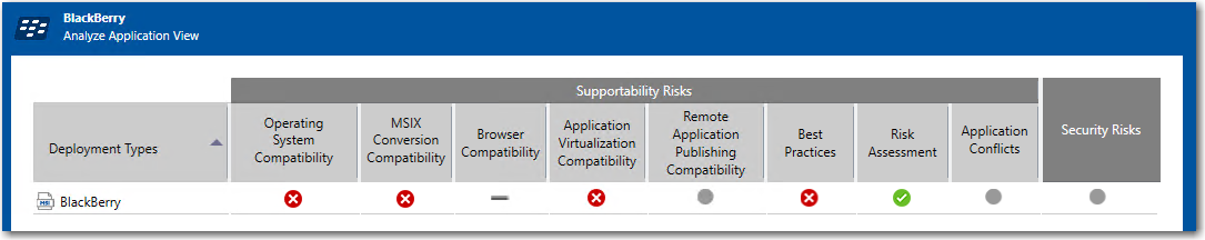 To view the status of a single application’s packages, select the application in the tree. The Analyze Application View opens. |