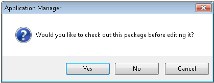 When you launch Virtual Package Editor from Application Manager by right-clicking on an App-V package and then selecting Edit with Virtual Package Editor from the shortcut menu, you are prompted to check out the package: