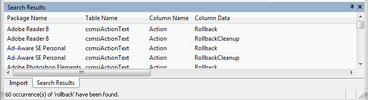 Click to initiate the search. The Find dialog box will close, and the data that is found is displayed in the Search Results tab of the Output Window, in the following format:
