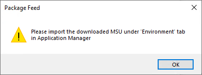 | • | When the package type is MSU the below message appears, see Security Patch File Selection Panel for further instructions. |