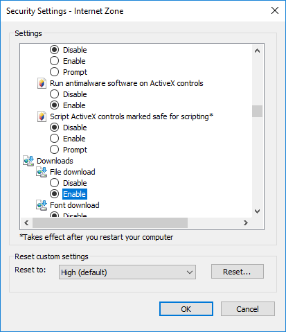 Tip:Make sure download option is enabled in your IE browser. Navigate to Tools (Alt+X) >> Internet options >> Security tab >> Custom level... >> Downloads >> select Enable