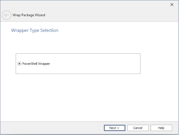 On the Wrapper Type Selection panel of the Wrap Package Wizard, the PowerShell Wrapper option is selected by default.