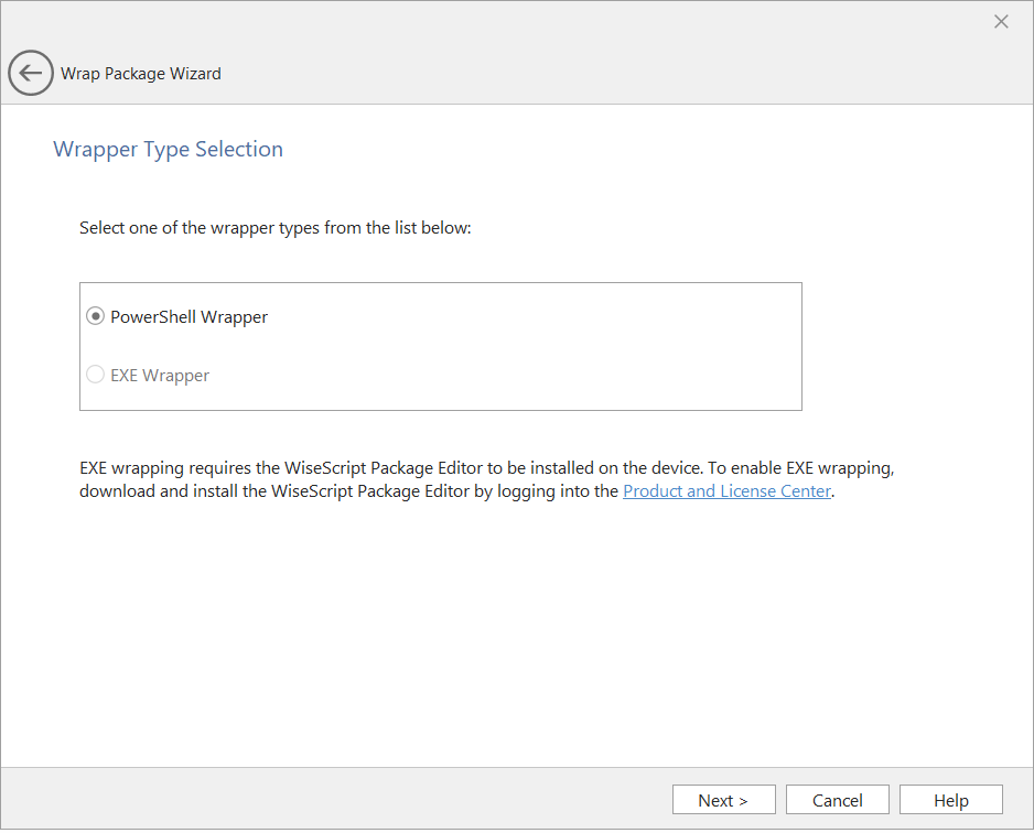 On the Wrapper Type Selection panel of the Wrap Package Wizard, you need to select one of the following: