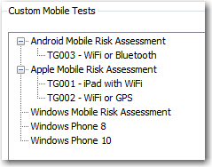 Custom Mobile Tests on Mobile Tests Tab of Options Dialog Box