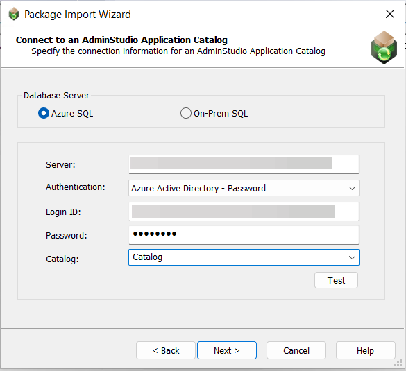 | 6. | Select AdminStudio Application Catalog and click Next. The Connect to an AdminStudio Application Catalog panel opens. |