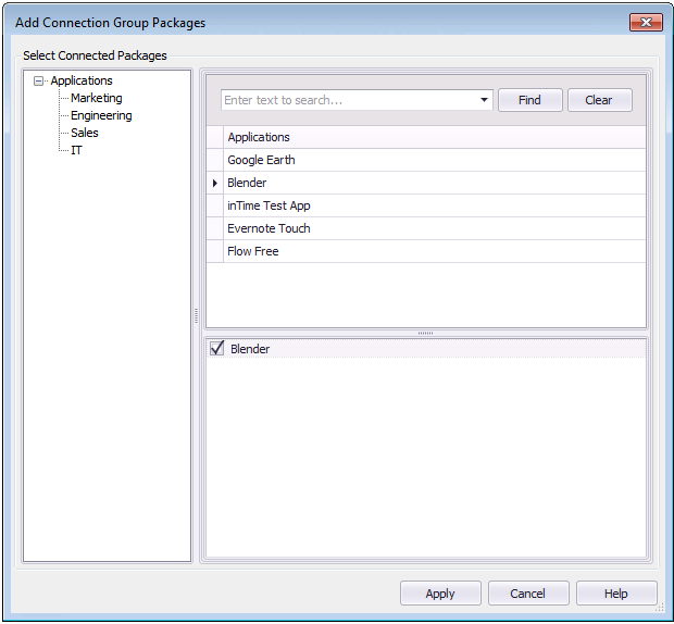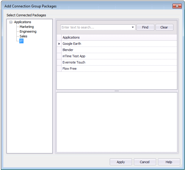 Under Select Connected Packages, select the group in the tree that contains the App-V package that you want to add to the connection group. The packages in that group are listed under Applications. |