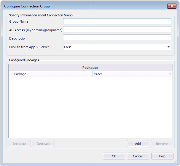 To add App-V packages to this connection group, click Add. The Add Connection Group Packages dialog box opens. |