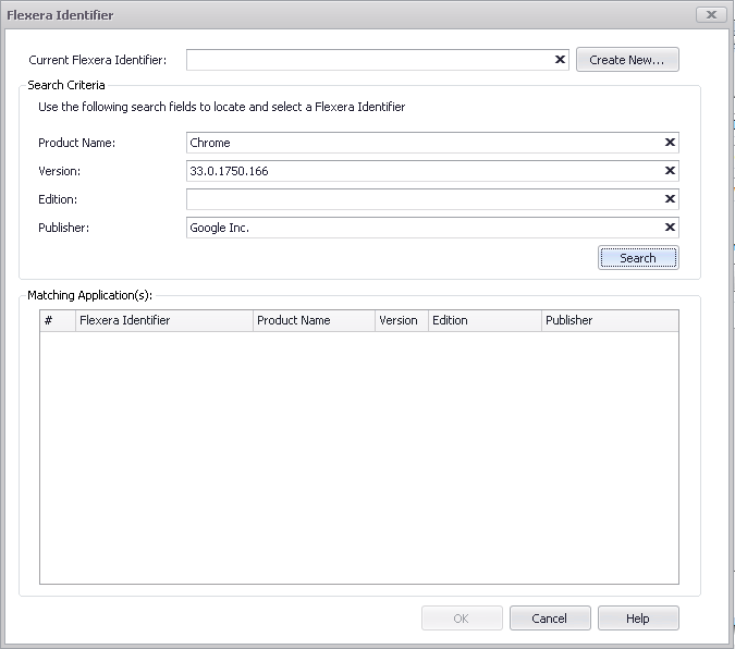 However, if an application still does not have an assigned Flexera Identifier, you can perform a manual search of the FlexNet Manager Suite Application Recognition Library.