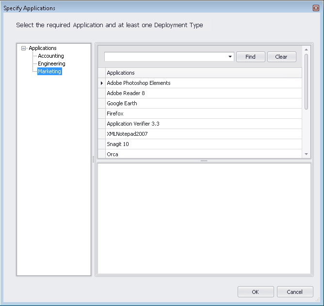 In the tree structure on the left, select the group that contains the App-V 5.0 package that you want to add. The names of the applications in that group are listed in the top pane. |