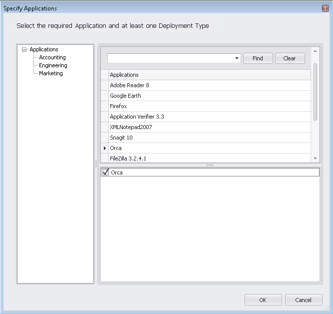 Click Add to add an App-V deployment type group. The Add Applications dialog box opens. |