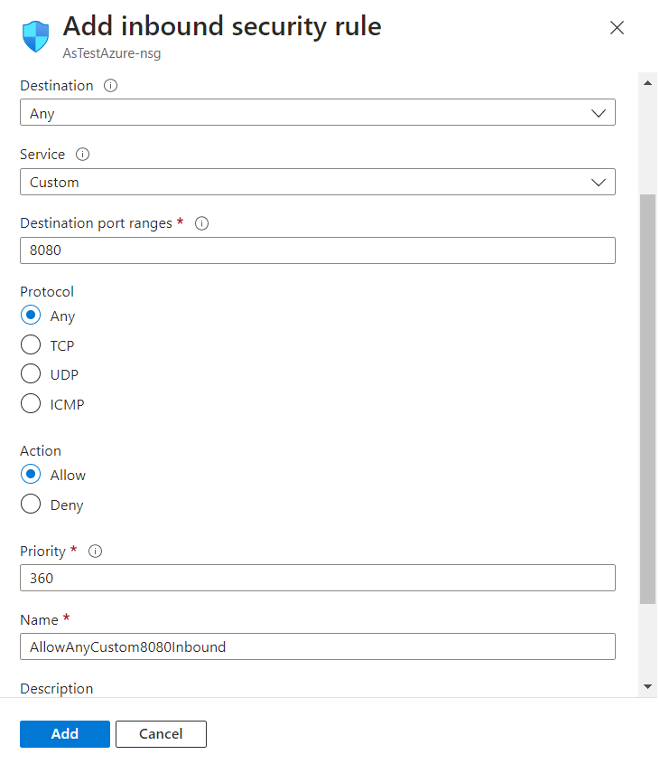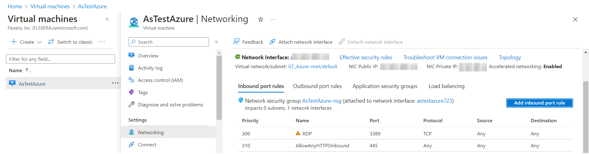 | 5. | In the Networking page, click the Add inbound port rule button. |