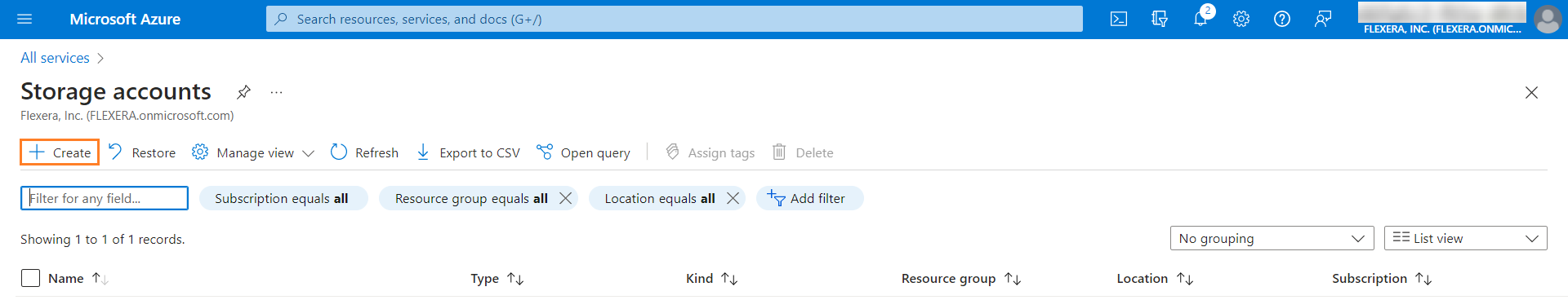 | 2. | From the list of available Azure services, choose Storage accounts. The Storage accounts page appears. |