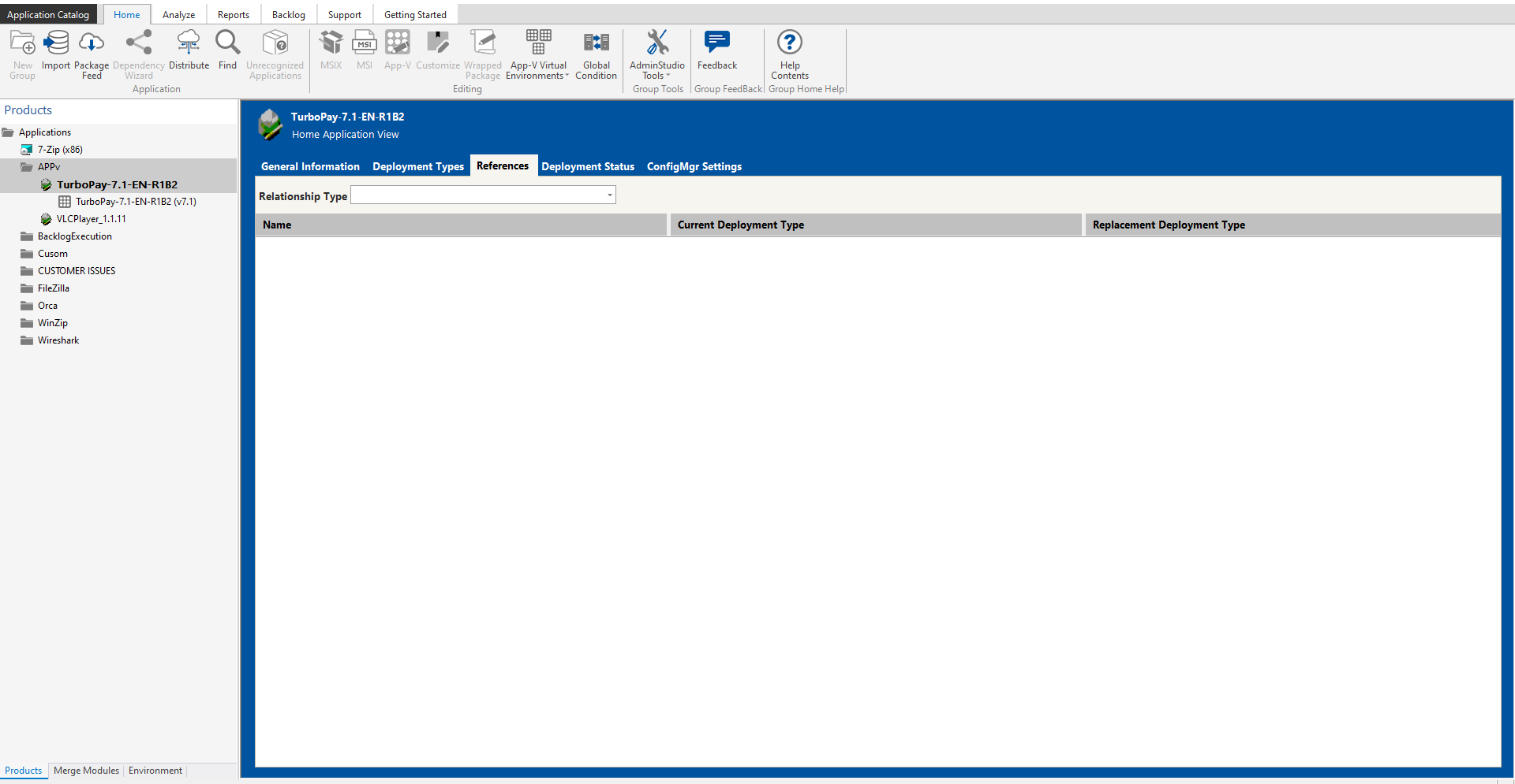On the References tab of the Application View, you can view a list of packages that are dependent upon this application or that supersede this application.