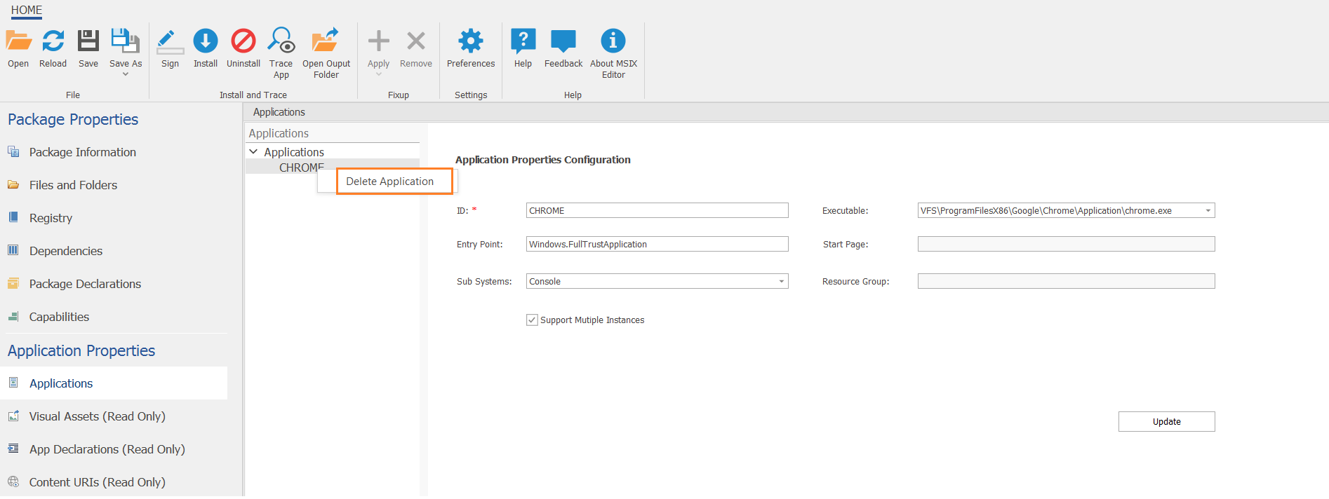 | 3. | Right-click on application, and then select Delete Application from the context menu. |