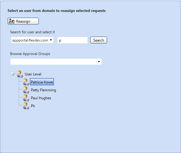 | 4. | Use the search box to search for a user or select an approval group from the Browse Approval Groups list. |