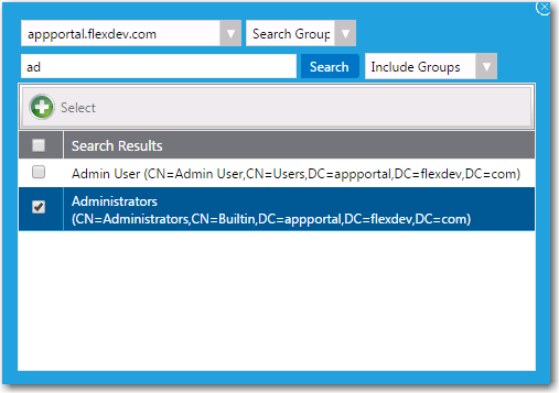 5. Use the search box to search for the group, OU, AD, or collection that you want to assign permission to, and select the checkbox next to the item in the search results list.