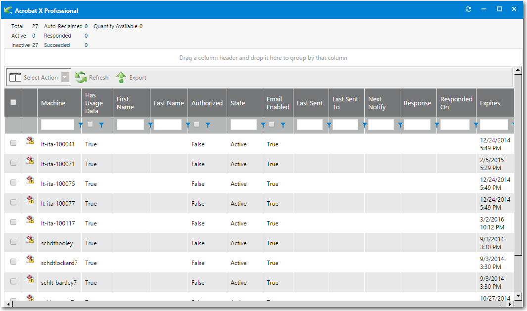 4. | View the items in the license reclamation grid, which is where the records and responses to the campaign are tracked. |
