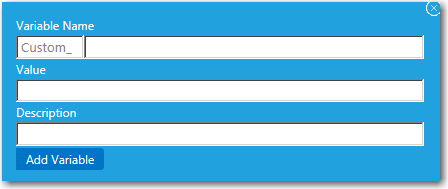 To add a new variable, click Add New Variable. A pop-up dialog opens where you can enter a Variable Name, Value, and Description. Click Add Variable to save the variable.