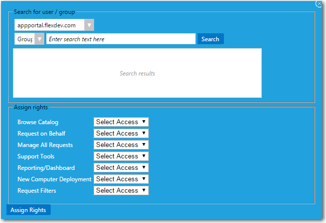 Click Assign Rights to add the user or group. |