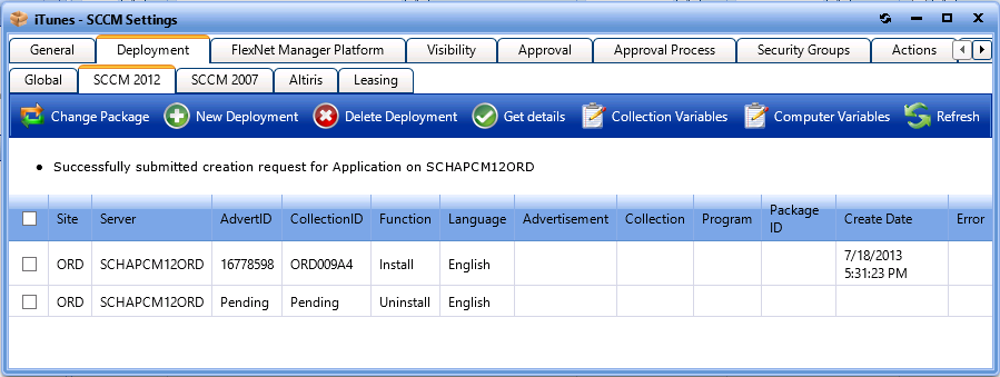 | 2. | Open the Deployment > SCCM 2012 subtab that contains the catalog item’s associated application or package. |
