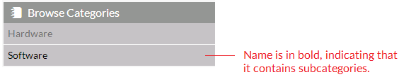 You can use the Browse Categories menu in the left pane to browse to the category that contains the catalog item you want to request. In this list, if the category name is listed in bold, it indicates that it contains subcategories.