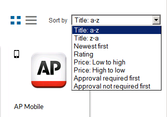 If you are viewing a large number of catalog items in the results pane, you may wish to sort the catalog items. To sort a list of catalog items, use the Sort by list.