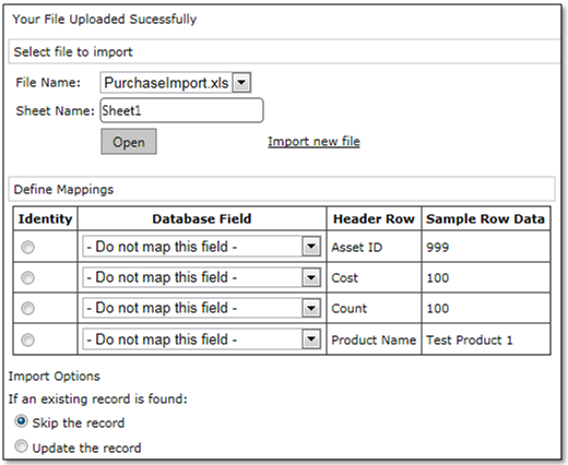Under Import Options, select an option to determine what App Portal should do if an existing record is found: |