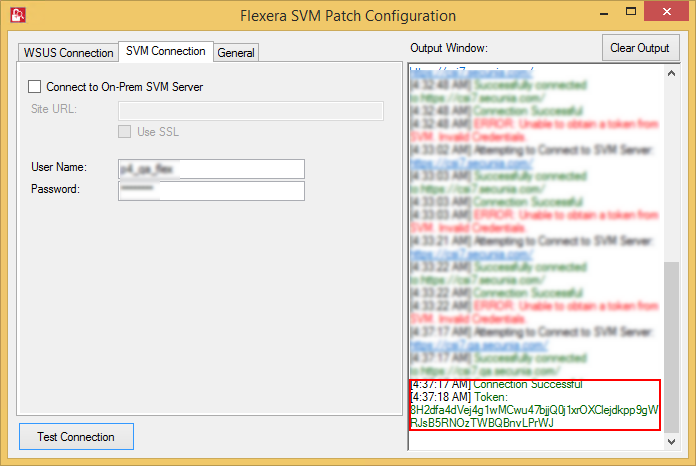 SVM Connection tab prompts you to enter a SVM credentials and token will be generated on successful connection.