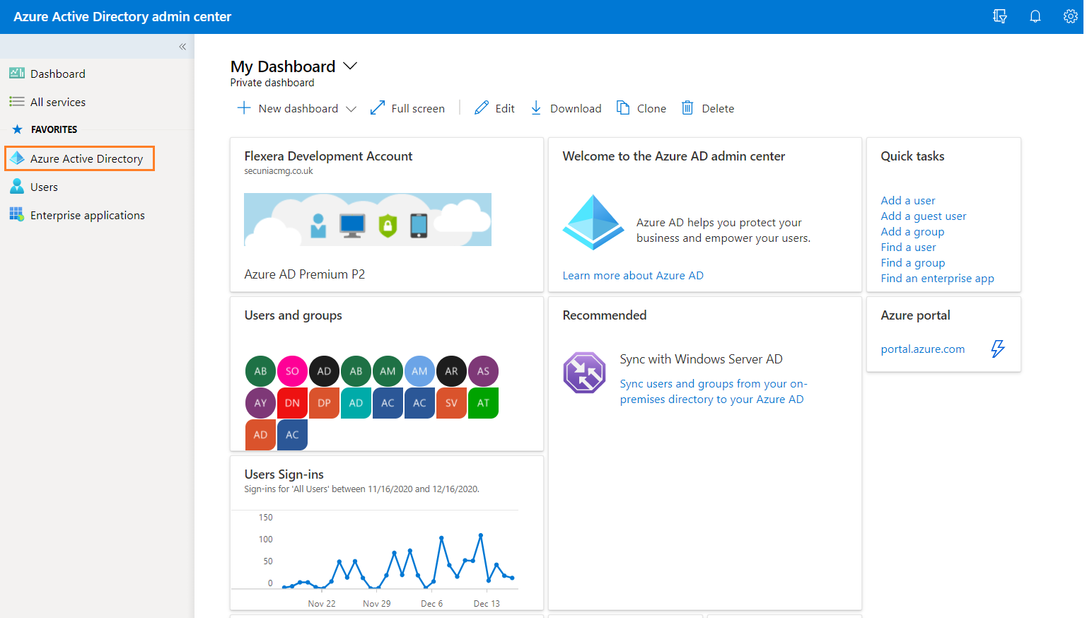| 3. | Once logged in, from the list of available Azure services, choose Azure Active Directory. |