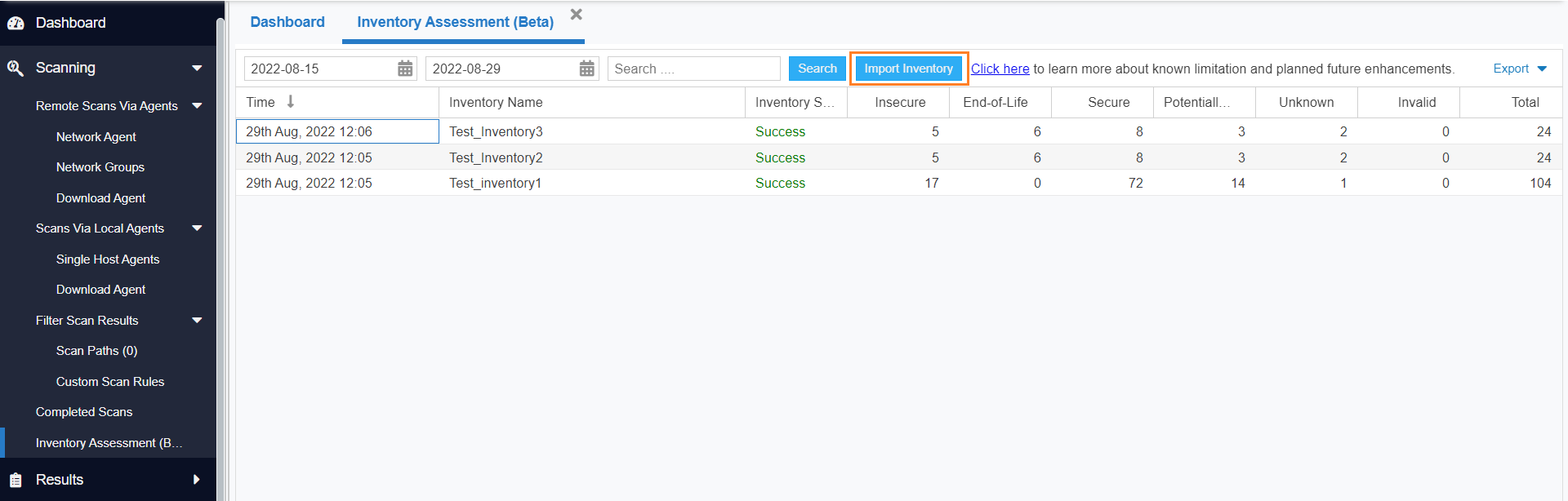 Click Import Inventory in the Inventory Assessment (Beta) page. |
