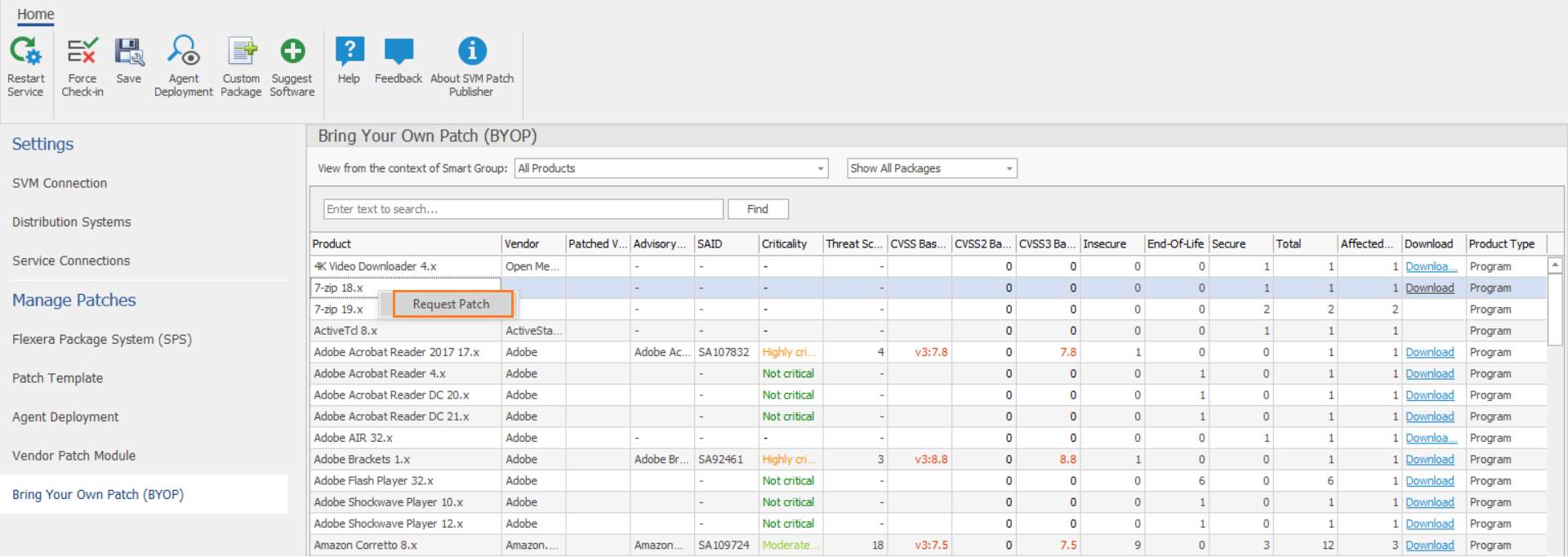| 2. | Right click on a desired package and select Request Patch from the context menu. |
