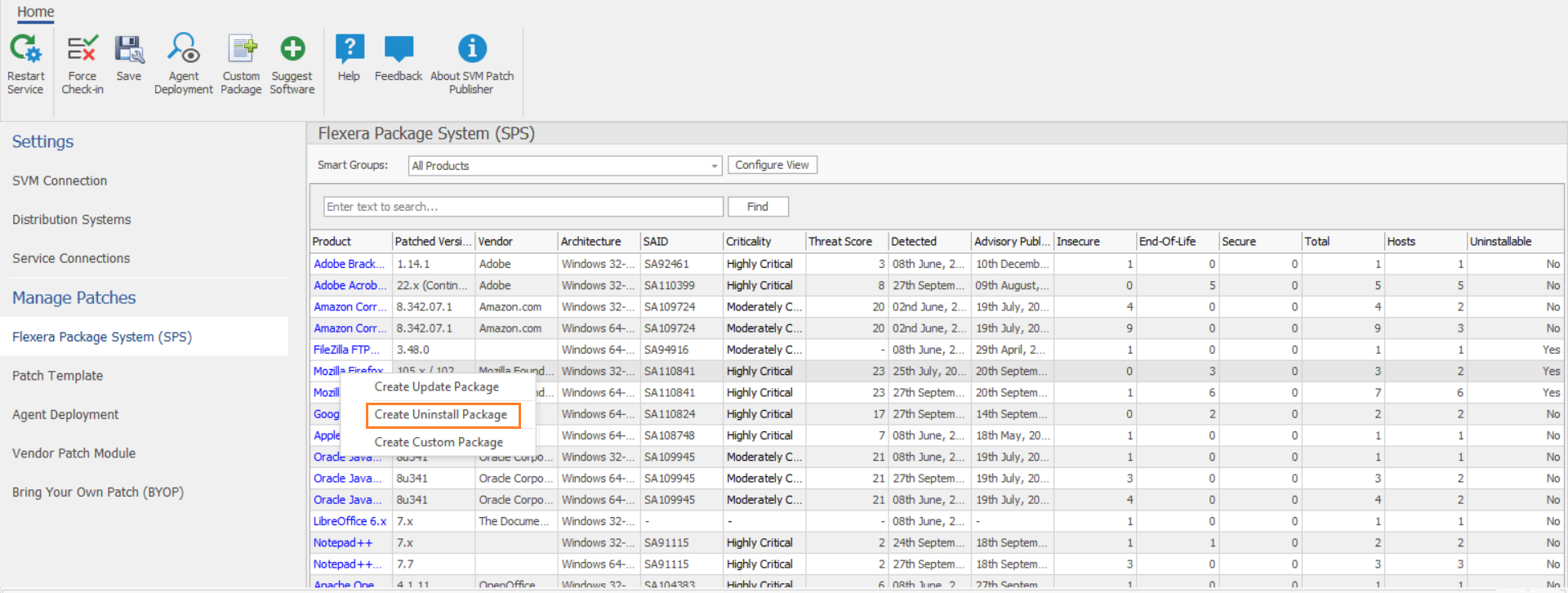 | 2. | Right click on a desired package and select Create Uninstall Package from the context menu. |