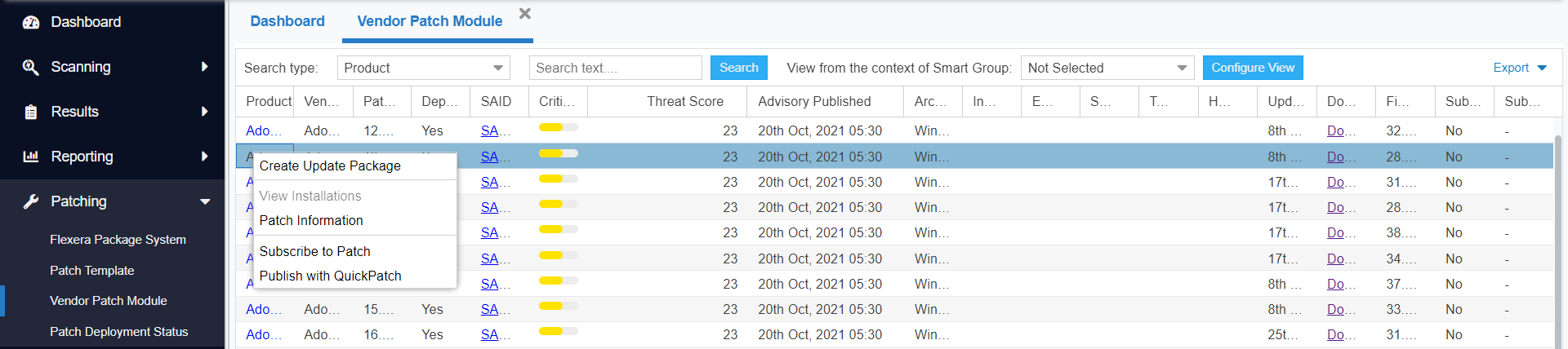 With Software Vulnerability Manager, you can automate publishing of patches. To do so, right click on any SPS template or VPM patch and select Subscribe to Patch from the context menu.