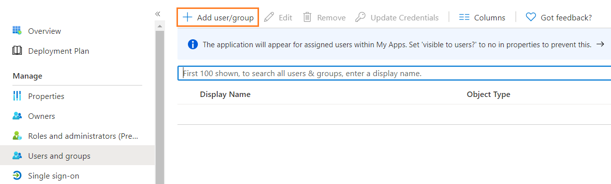 | 1. | On the application account details page, select Users and groups from the left panel. |