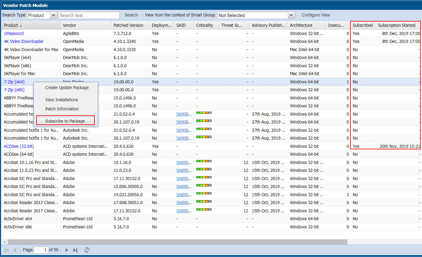 In Vendor Patch Module, new option Subscribe to Package has been added to right click menu which helps user to automate deployment of patches.