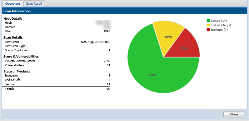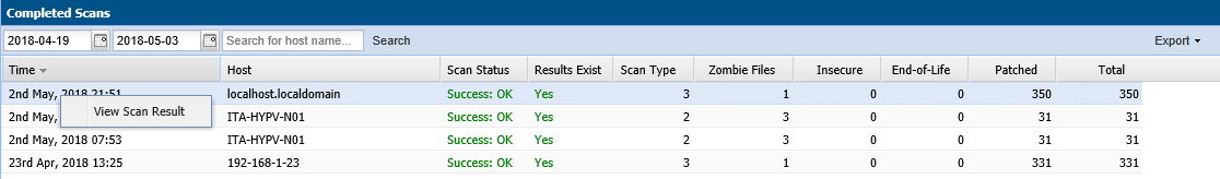 Use this page to view a summary of the scans conducted. Double-click an entry for further details or right-click and select View Scan Result.