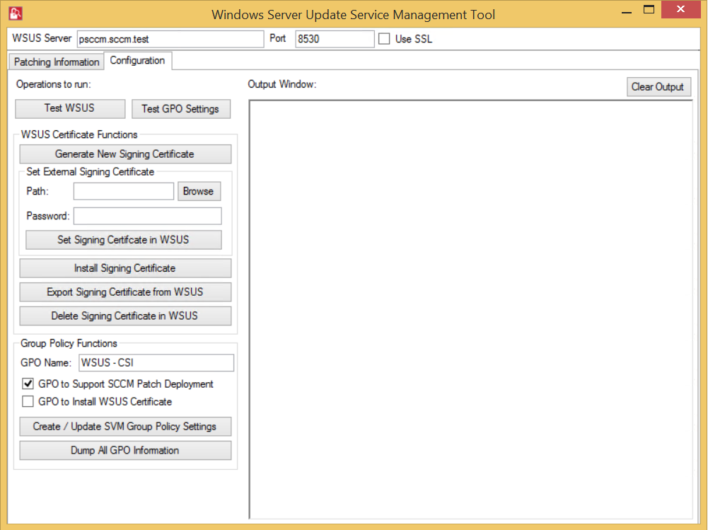 In Configuration tab, you can perform the below WSUS configuration actions: